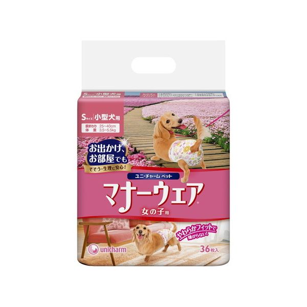 ユニ・チャーム マナーウェア女の子用Sサイズ小型犬用36枚
