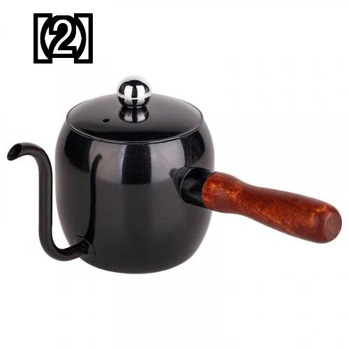 コーヒー ドリップ ケトル おしゃれ ステンレス 細口 木製ハンドル アウトドア シンプル 和風 洗いやすい 500ml 黒 シルバー