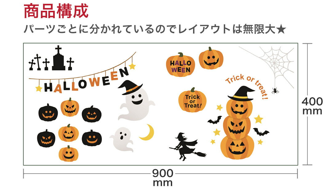 ウォールステッカー 飾り 400×900mm シール式 装飾 おしゃれ 壁紙 はがせる DIY プチリフォーム パーティー イベント ハロウィーン 賃貸 013845 ハロウィン かぼちゃ おばけ