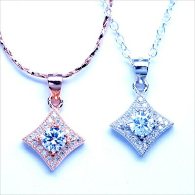 クリアキュービックジルコニア・センター&ライン装飾 スクエア型ミニチャーム レディース シルバー925 ジュエリー ペンダント ネックレス【ピンクゴールドorシルバー】